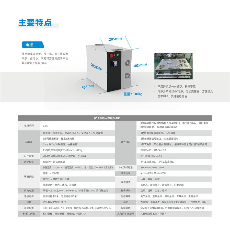 使用竖式示教器,机器人编程效率更高。小电柜,体积小,可集成到激光主机。